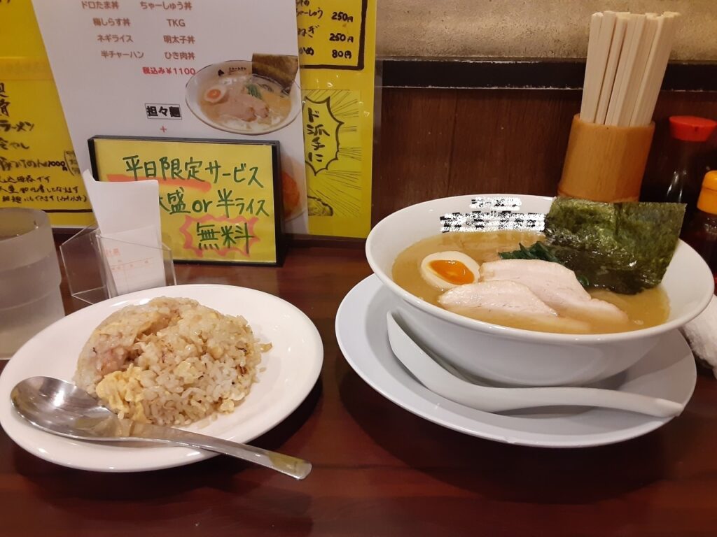 江南区 ショウガの効いた細麺らーめん やはり半チャーハンを頼んでしまう