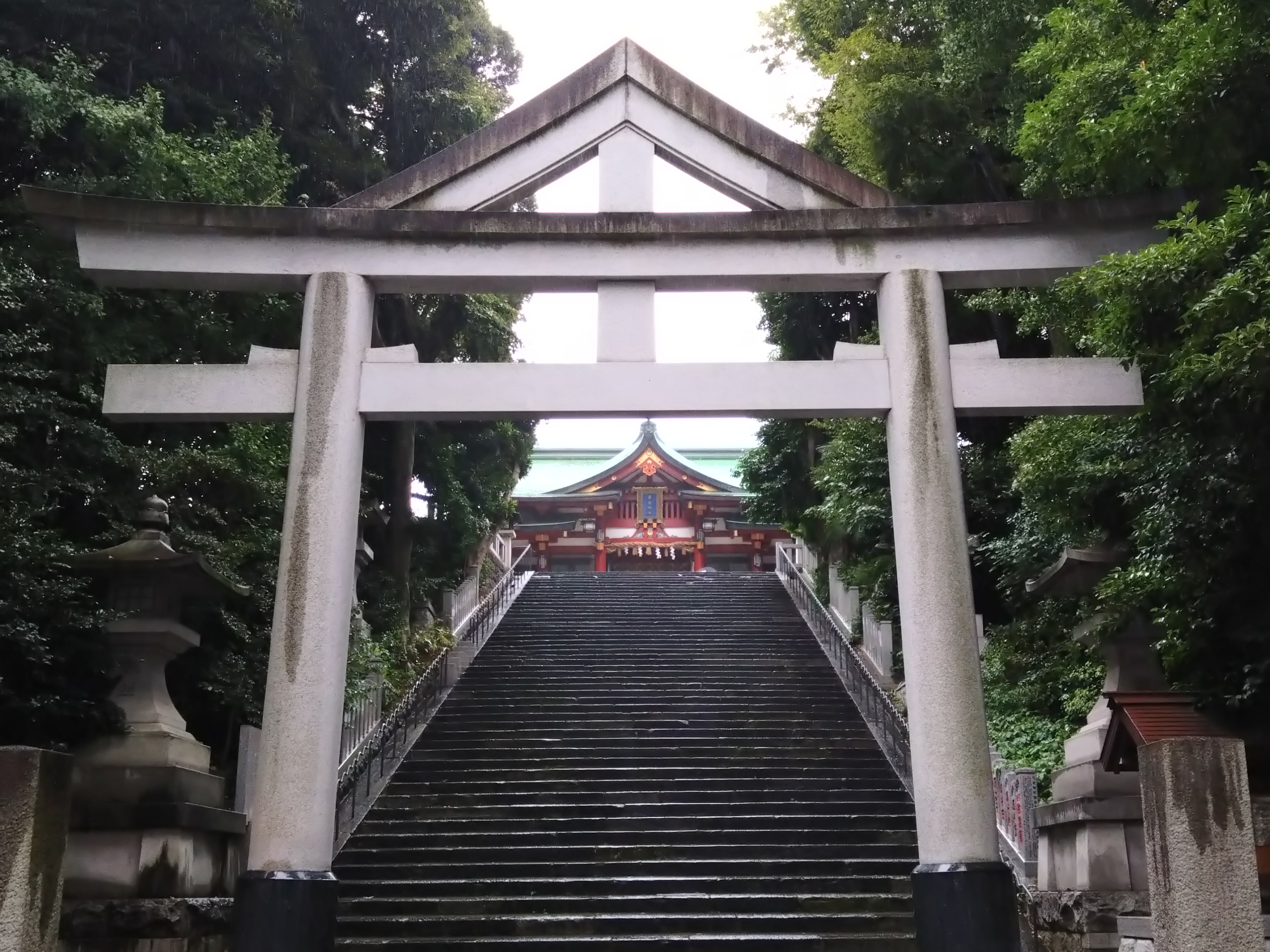 鳥居の上に三角形の屋根(破風)が乗っていて、まるで手を合わせているような形。別名「合掌鳥居」とも呼ばれ、神道と仏教が融合した「神仏習合」の名残なんだとか。見上げているだけで、神秘的なパワーを感じました。