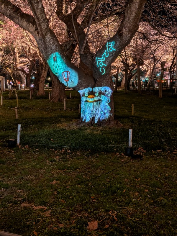 夜になると桜のライトアップやプロジェクションマッピングなど、また昼間とは違った雰囲気を楽しめました。
